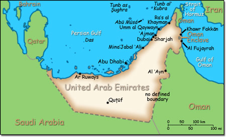 Official Name: United Arab Emirates Location: Middle East, bordering the Gulf of Oman and the Persian Gulf, between Oman and Saudi Arabia. Capital: Abu Dhabi