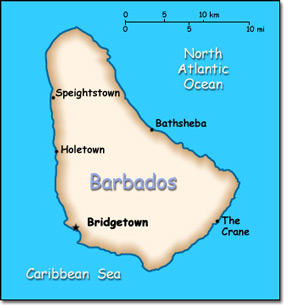 Official Name: Barbados Location: Caribbean, island in the North Atlantic Ocean, northeast of Venezuela. Capital: Bridgetown