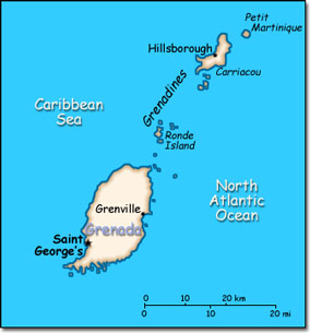 Official Name: Grenada Location: Caribbean, island between the Caribbean Sea and Atlantic Ocean, north of Trinidad and Tobago. Capital: Saint George's