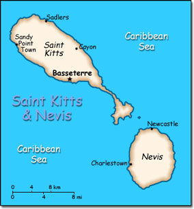 Official Name: Federation of Saint Kitts and Nevis Location: Caribbean, islands in the Caribbean Sea, about one-third of the way from Puerto Rico to Trinidad and Tobago. Capital: Basseterre on St. Christopher Island