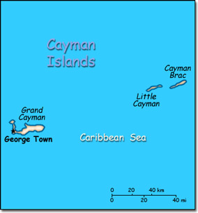 Official Name: Cayman Islands Location: Caribbean, three-island group (Grand Cayman, Cayman Brac, Little Cayman) in Caribbean Sea, 240 km south of Cuba and 268 km northwest of Jamaica Capital: George Town on Grand Cayman Island