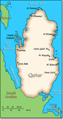 Official Name: State of Qatar Location: Middle East, peninsula bordering the Persian Gulf and Saudi Arabia. Capital: Doha