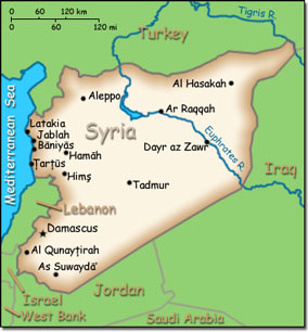 Official Name: Syrian Arab Republic Location: Middle East, bordering the Mediterranean Sea, between Lebanon and Turkey. Capital: Damascus
