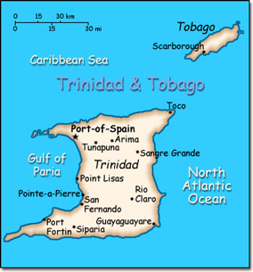 Official Name: Republic of Trinidad and Tobago Location: Caribbean, islands between the Caribbean Sea and the North Atlantic Ocean, northeast of Venezuela. Capital: Port of Spain